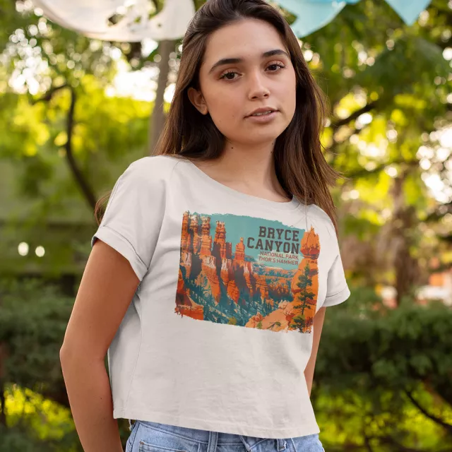 Bryce Canyon Cropped T-Shirt – Wilderness Explorer Trendy Tee – Vintage National Park Women’s Basic T-Shirt