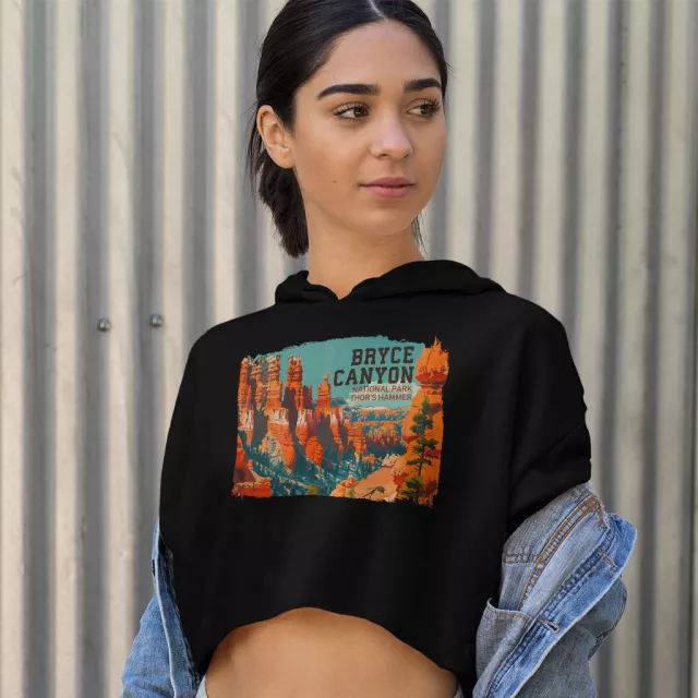 Bryce Canyon Women’s Cropped Hoodie – Vintage National Park Hooded Sweatshirt – Wilderness Explorer Super Crop Top Hoodies