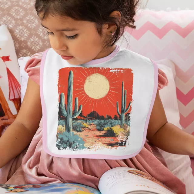 Desert Sunrise Baby Bibs – Cactus Plants Baby Feeding Bibs – Camping Gift Unisex Bibs for Eating