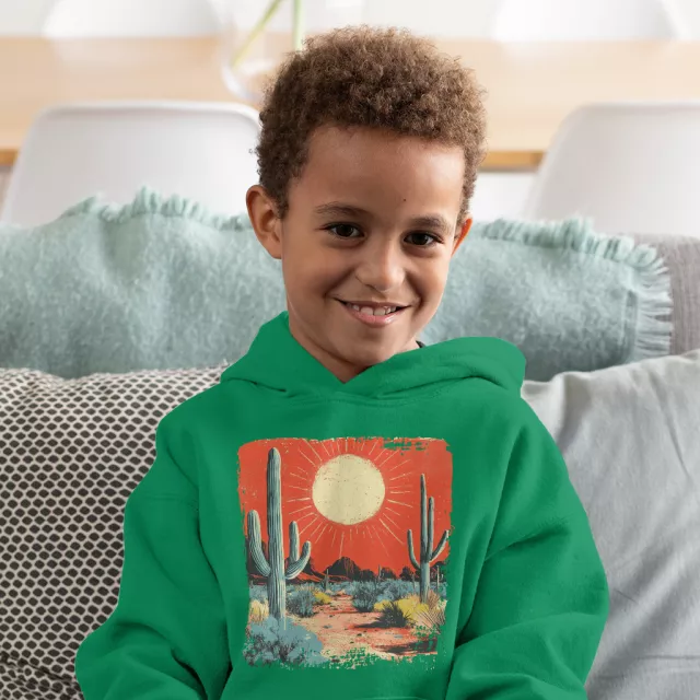 Desert Sunrise Toddler Hoodie – Camping Gift Hoodie for Kids – Cactus Plants Hooded Pullover
