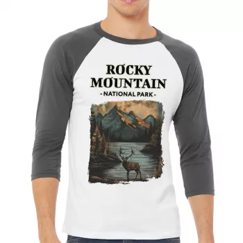 Rocky Mountain National Park Baseball T-Shirt – Mountain Adventure 3/4 Sleeve – Hiking Gift Raglan Jersey Shirt