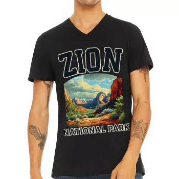 Zion National Park V-Neck T-Shirt – Nature Basic T-Shirt – Utah Travel Tee