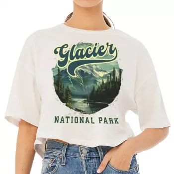 Glacier National Park Cropped T-Shirt – Nature Lovers Trendy Tee – Family Hiking Women’s Basic T-Shirt
