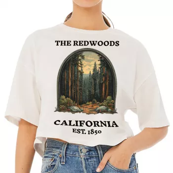 The Redwoods Cropped T-Shirt – National Park Gift Trendy Tee – Outdoor Family Women’s Basic T-Shirt