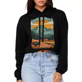 Yellowstone National Park Women’s Cropped Hoodie – Camping Hooded Sweatshirt – Buffalo Super Crop Top Hoodies