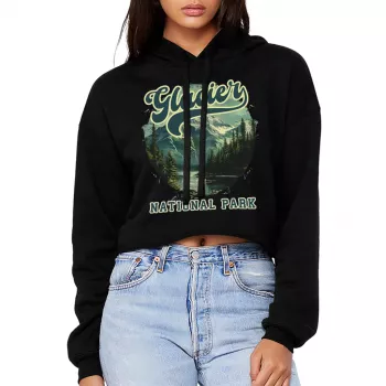 Glacier National Park Women’s Cropped Hoodie – Nature Lovers Hooded Sweatshirt – Family Hiking Super Crop Top Hoodies