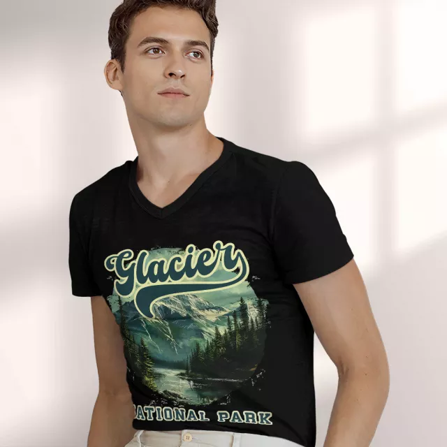 Glacier National Park V-Neck T-Shirt – Nature Lovers Basic T-Shirt – Family Hiking Tee
