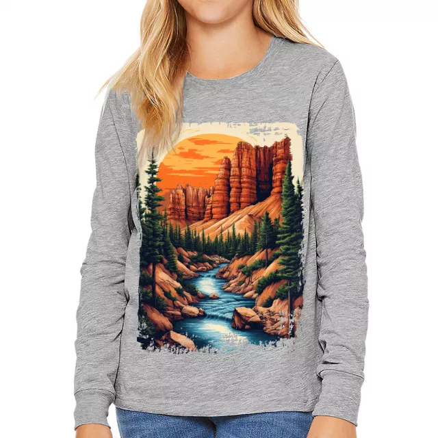 Retro Pine Trees Kids’ Long Sleeve T-Shirt – Forest Themed T-Shirt for Kids – Camping Gift Tee for Boys Girls