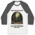 features raglan 3/4 sleeves and a modern fit that is perfect for a day