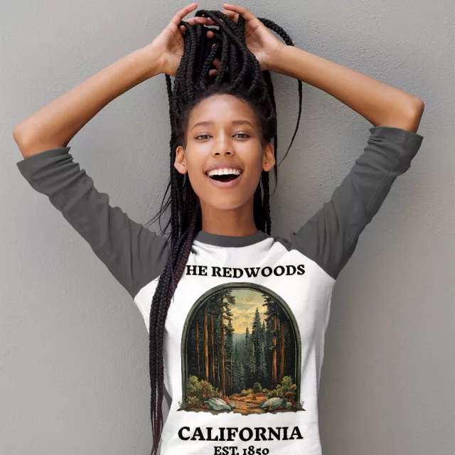 The Redwoods Baseball T-Shirt – Outdoor Family 3/4 Sleeve – National Park Gift Raglan Jersey Shirt