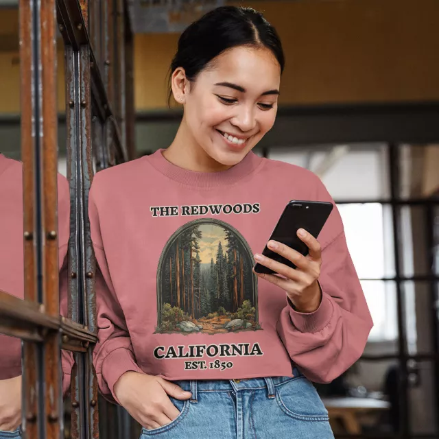 The Redwoods Cropped Long Sleeve Sweatshirt – National Park Gift Women’s Crop Top – Outdoor Family Long Sleeves Pullover