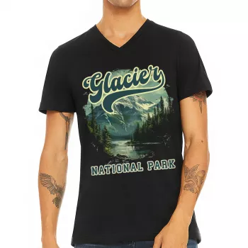 Glacier National Park V-Neck T-Shirt – Nature Lovers Basic T-Shirt – Family Hiking Tee
