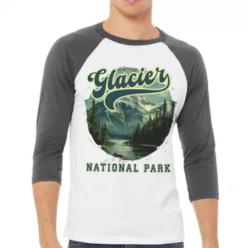 Glacier National Park Baseball T-Shirt – Family Hiking 3/4 Sleeve – Nature Lovers Raglan Jersey Shirt