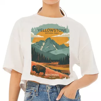 Yellowstone National Park Cropped T-Shirt – Camping Trendy Tee – Buffalo Women’s Basic T-Shirt