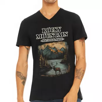 Rocky Mountain National Park V-Neck T-Shirt – Hiking Gift Basic T-Shirt – Mountain Adventure Tee
