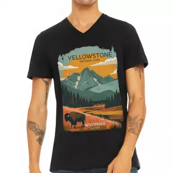 Yellowstone National Park V-Neck T-Shirt – Camping Basic T-Shirt – Buffalo Tee
