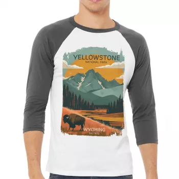 Yellowstone National Park Baseball T-Shirt – Camping 3/4 Sleeve – Buffalo Raglan Jersey Shirt