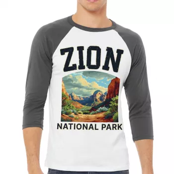 Zion National Park Baseball T-Shirt – Utah Travel 3/4 Sleeve – Nature Raglan Jersey Shirt