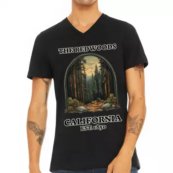The Redwoods V-Neck T-Shirt – National Park Gift Basic T-Shirt – Outdoor Family Tee
