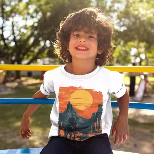 Western Cowboy Kids’ Cotton T-Shirt – Mojave Desert Short Sleeve Tee – Wildwest T-Shirt for Kids