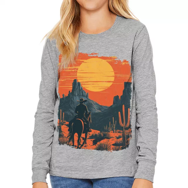 Western Cowboy Kids’ Long Sleeve T-Shirt – Mojave Desert T-Shirt for Kids – Wildwest Tee for Boys Girls
