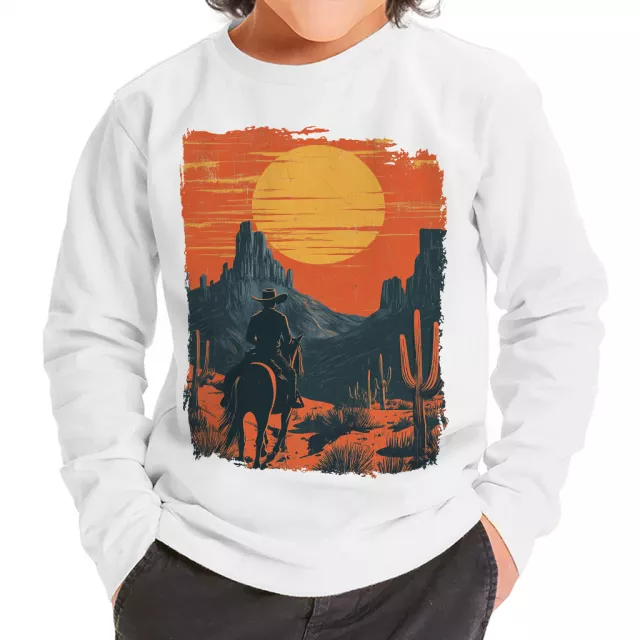 Western Cowboy Toddler Long Sleeve T-Shirt – Wildwest Boy Girl Tee – Mojave Desert T-Shirt for Kids