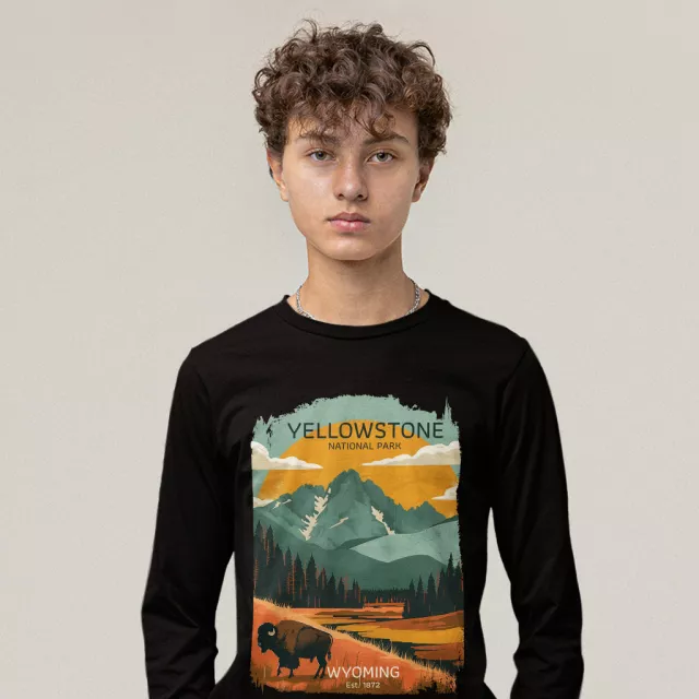 Yellowstone National Park Long Sleeve T-Shirt – Buffalo T-Shirt – Camping Basic Tee