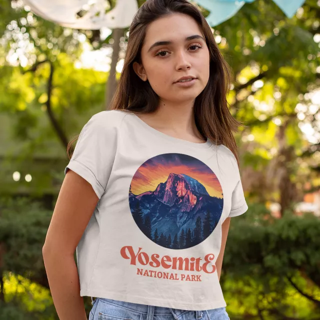 Yosemite National Park Cropped T-Shirt – Park Adventure Trendy Tee – Hiking Women’s Basic T-Shirt