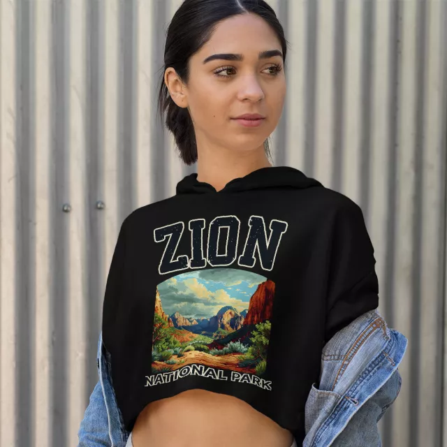Zion National Park Women’s Cropped Hoodie – Utah Travel Hooded Sweatshirt – Nature Super Crop Top Hoodies